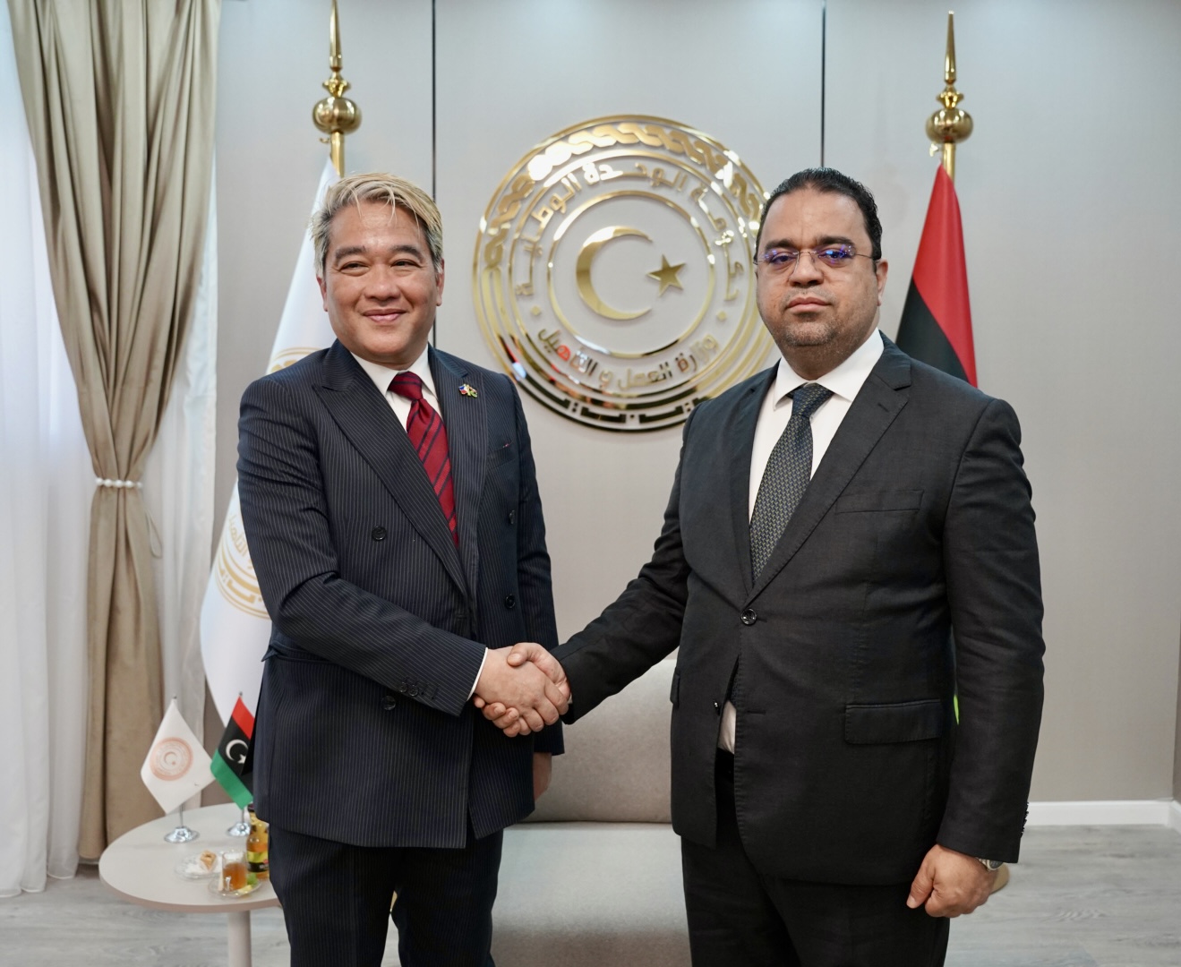 طرابلس 7 أبريل 2026 استقبل وزير العمل والتأهيل، المهندس علي العابد الرضا، القائم بالأعمال بالسفارة الفلبينية لدى ليبيا، السيد روديريكو سي. أتينزا؛ وذلك في إطار