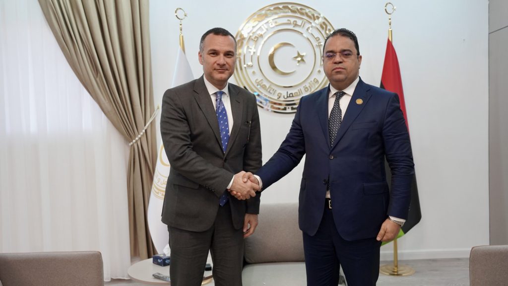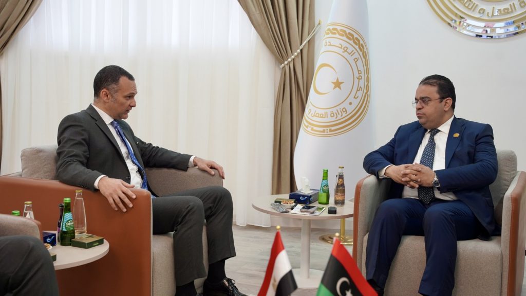 في إطار جهود وزارة العمل والتأهيل المستمرة لتنظيم سوق العمل الوطني وضمان حقوق العمالة، التقى معالي وزير العمل والتأهيل، المهندس علي العابد الرضا، بالقائم بأعمال سفارة جمهورية مصر العربية لدى ليبيا، سعادة السفير تامر الحفني، لبحث سبل تنظيم وتسوية أوضاع العمالة المصرية داخل البلاد.