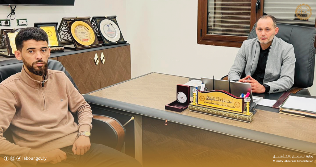التقى وكيل وزارة العمل والتأهيل لشؤون التخطيط والديوان، السيد حسام عبد السلام المزوغي، عميد بلدية سيناون السيد ربيع محمد أحمد قنيدي، وذلك في إطار متابعة سير العمل وتعزيز مستوى الخدمات المقدمة للمواطنين.